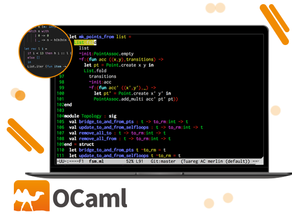 - OCaml has got high-level functional constructs as well as garbage collection and so, people aren’t required to bother about memory leaks.