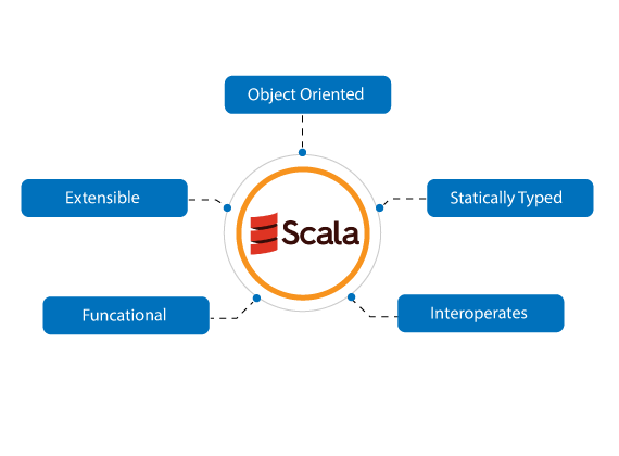 - It has in-built patterns that are imprinted in the language. Scala can adopt languages such as Python and Ruby for functional programming.